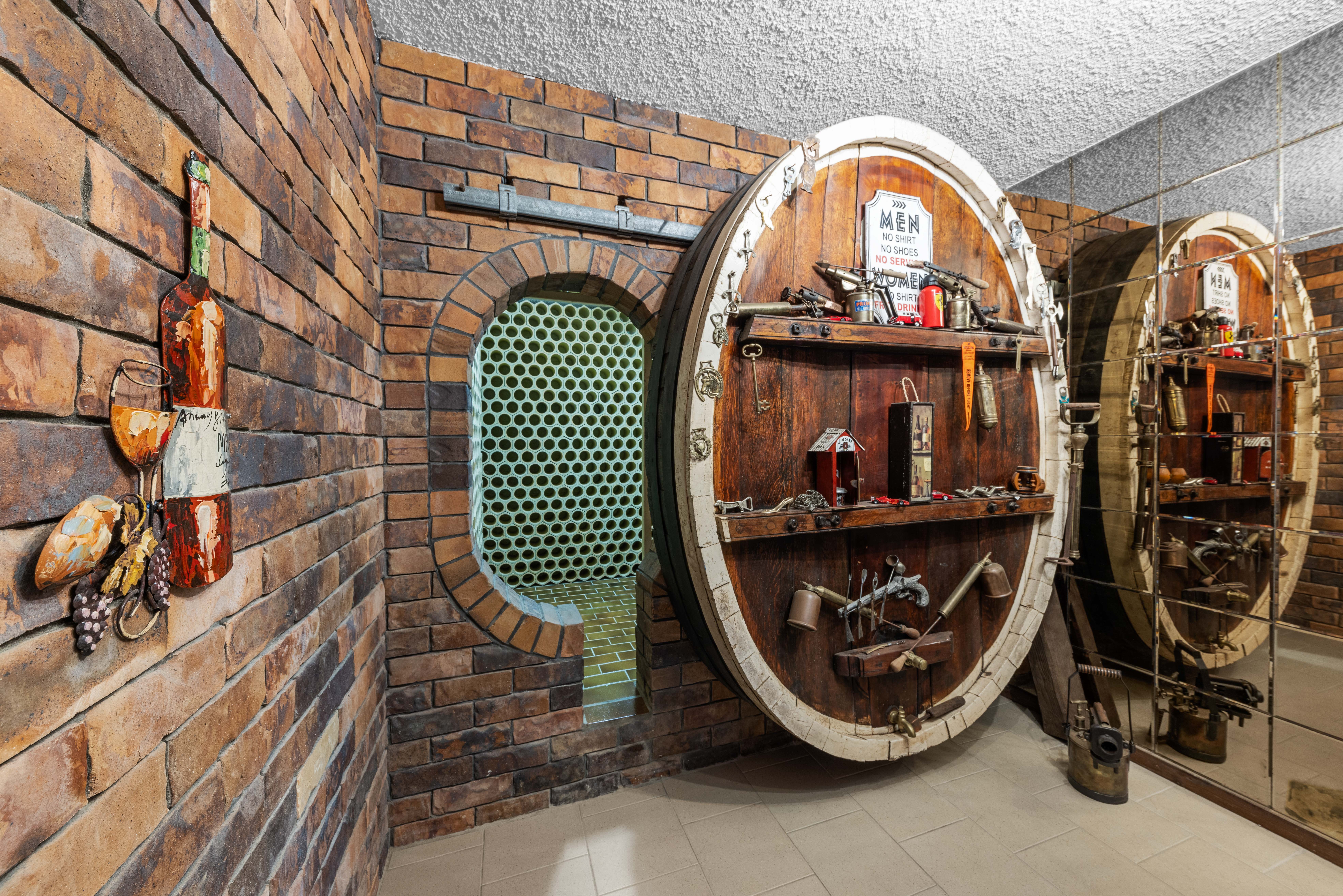 A wide staircase leads down to the rumpus where the semi-underground, alehouse-style bar adjoins, complete with a sliding wine barrel-style barn door closure to an approximately 1700-bottle, naturally cooled cellar. Outside, a near-new Vergola louvre-covered patio, wide, tiled verandahs, an eclectic studio space with a sun deck and the rustic 'loo with a view' grant a choice of unique spaces that retain a connection with the great outdoors.