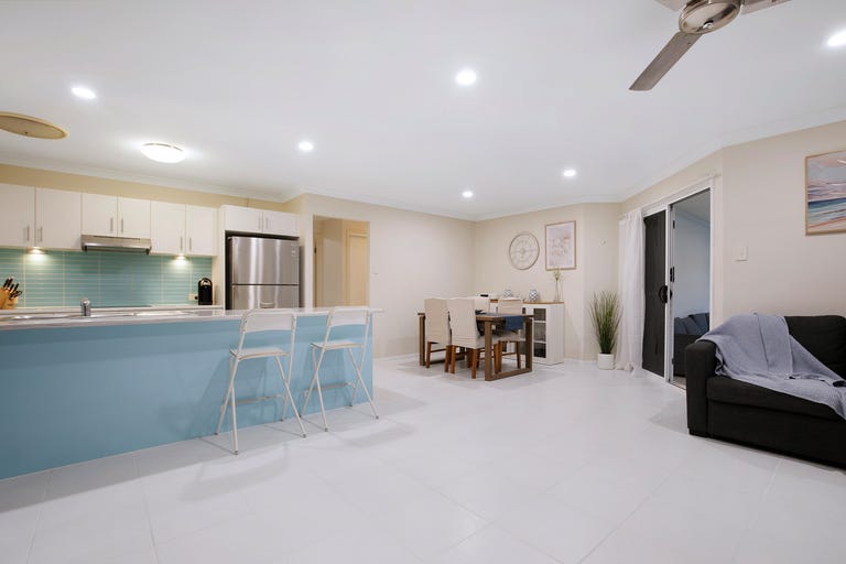 The living space is generous and welcoming, with large windows and a sliding door that allows beautiful breezes and natural light to fill the home throughout the day. The space is completed with venetian blinds, curtains, split air-conditioning and ceiling fan.