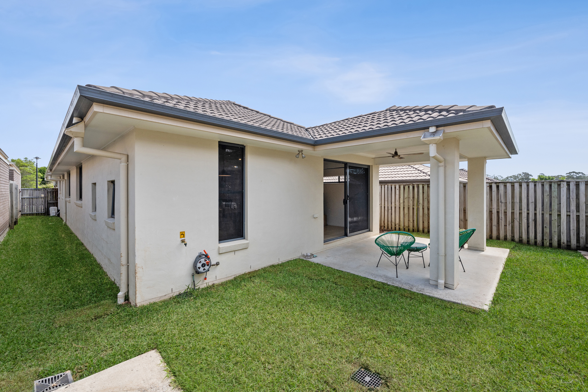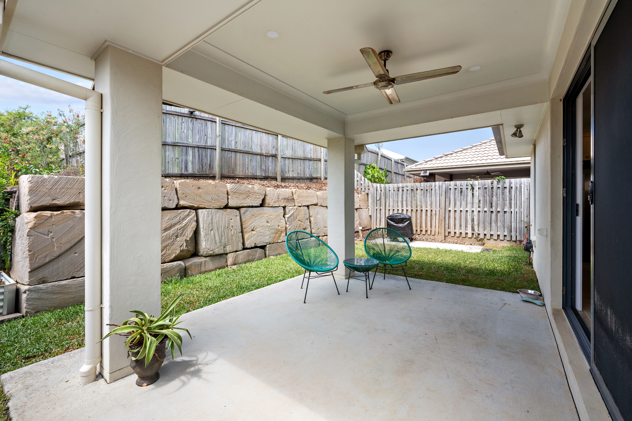 - Private Backyard: Fully fenced, ideal for children and pets. - Outdoor Entertaining Area: Covered patio.