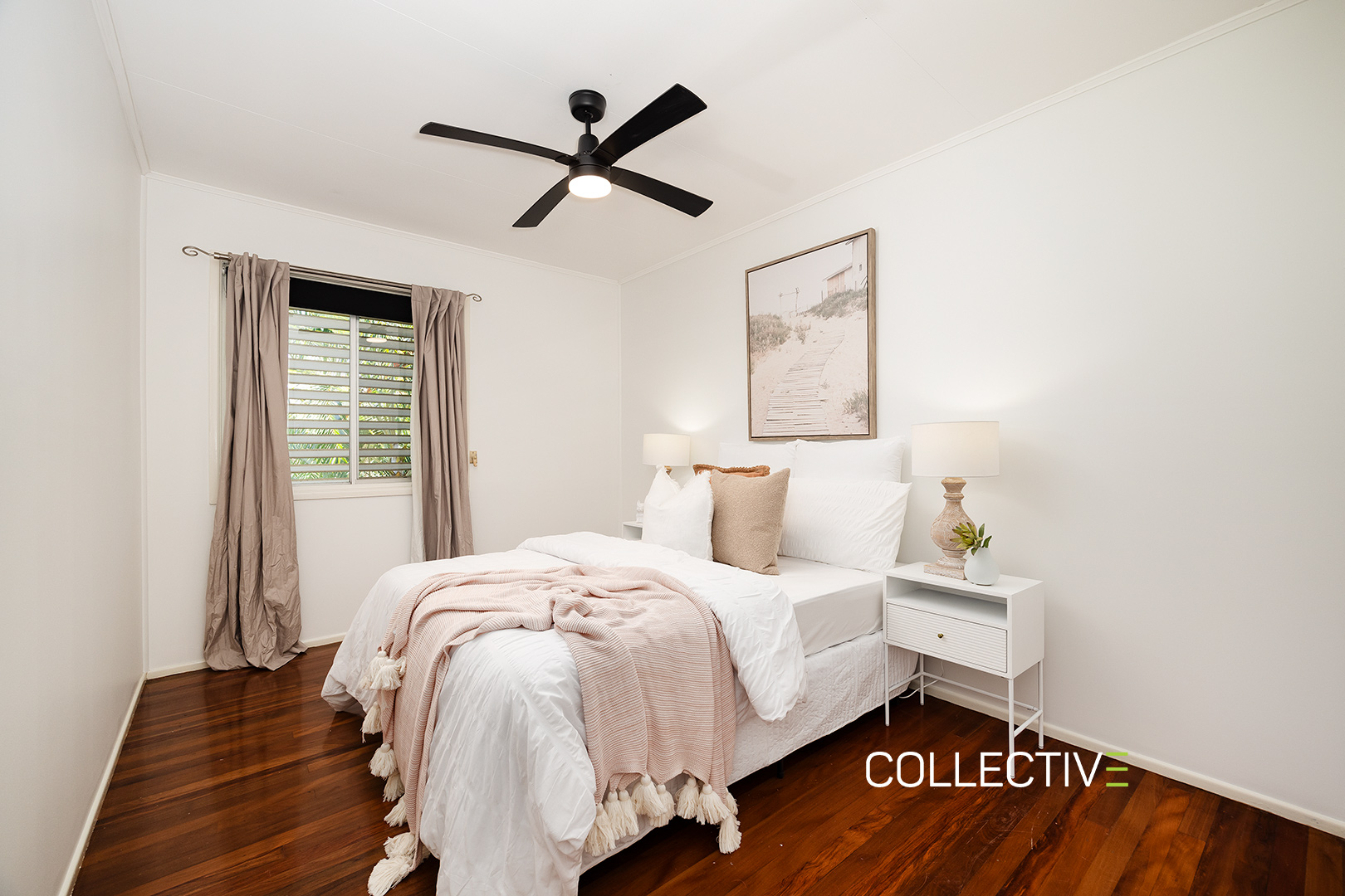 The fully fenced yard, which offers a free standing covered entertaining space, has ample grass to enjoy and vegie/garden boxes for your green thumb needs and a mature mango tree to relax under.