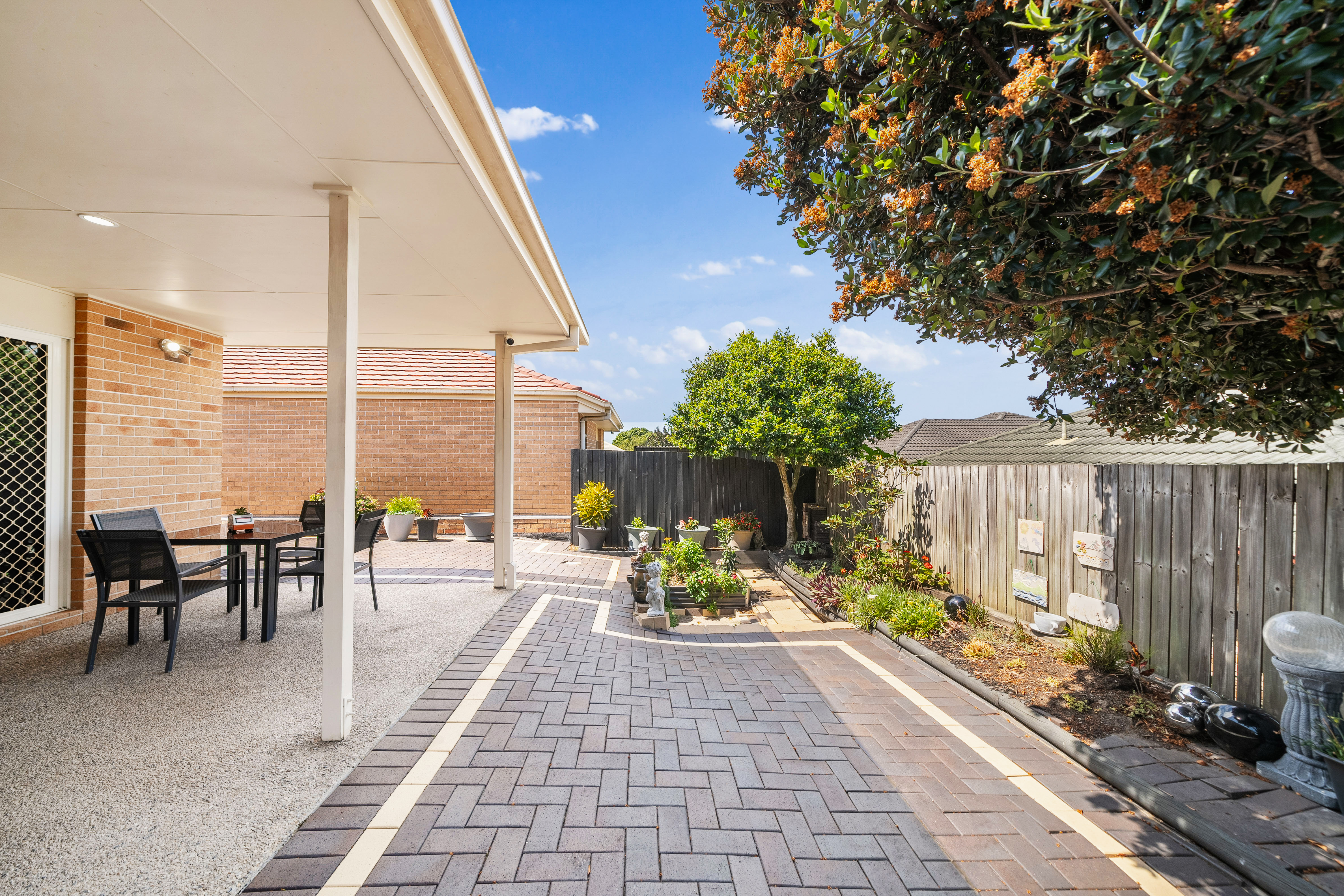 Outside, the fully paved rear yard is perfect for entertaining, with plenty of covered space to relax with friends and family. The property is fully fenced, providing privacy and security, while the front garden adds a welcoming touch to the home's exterior.