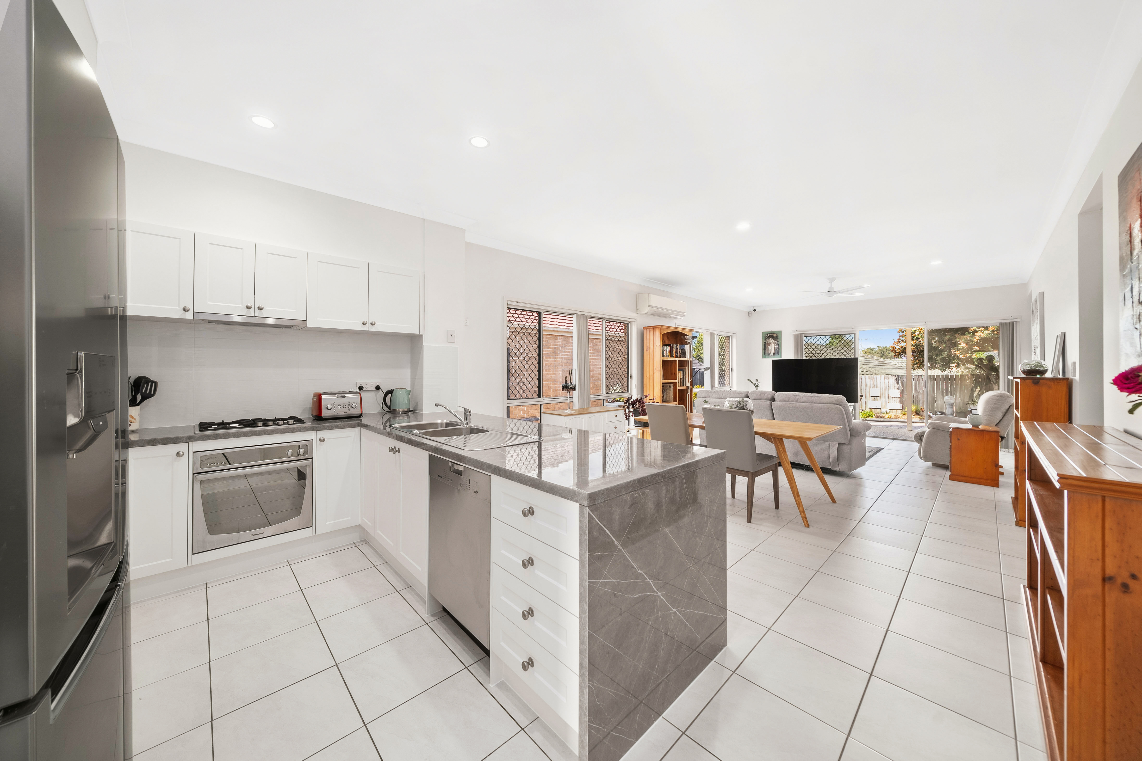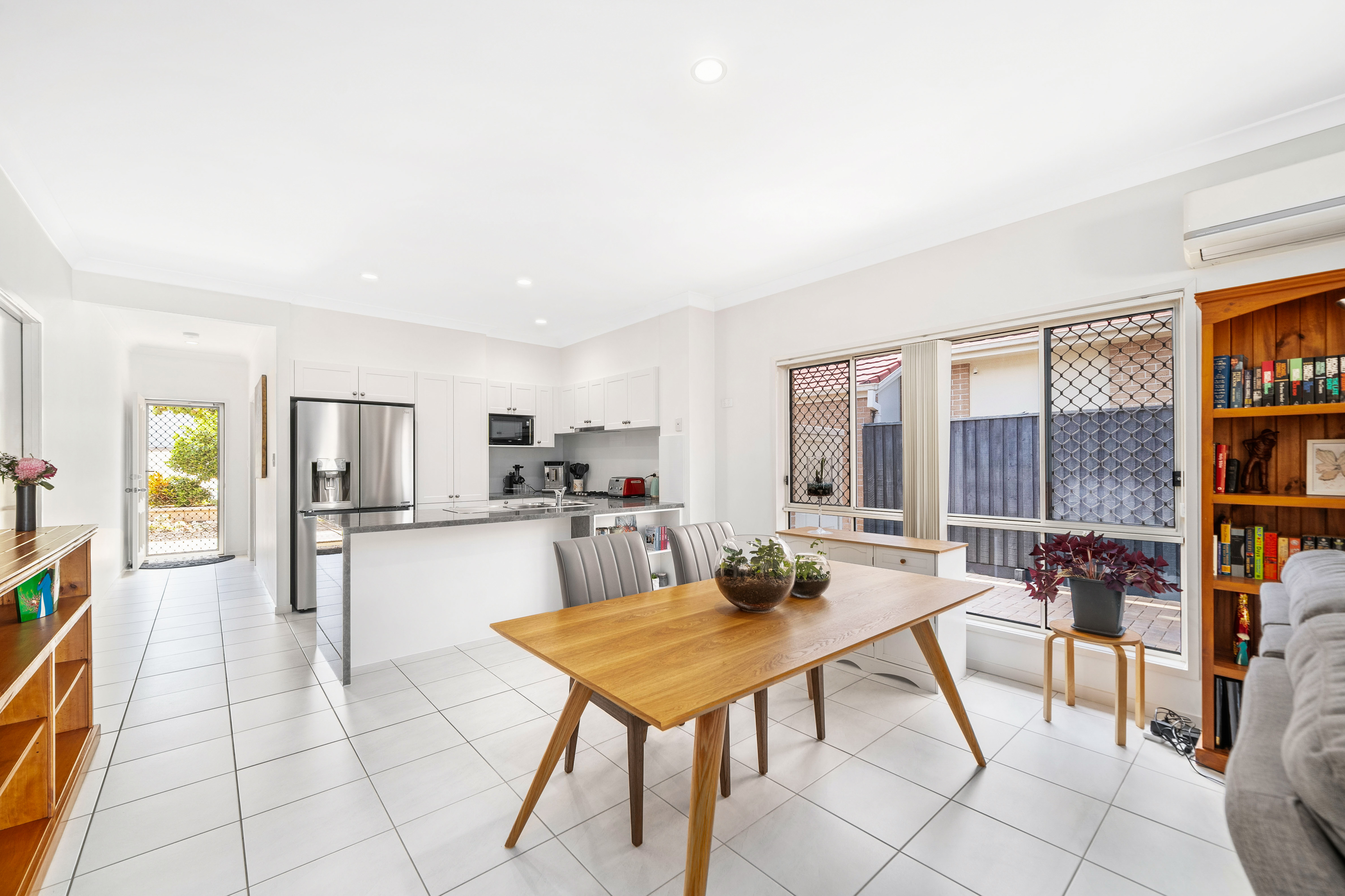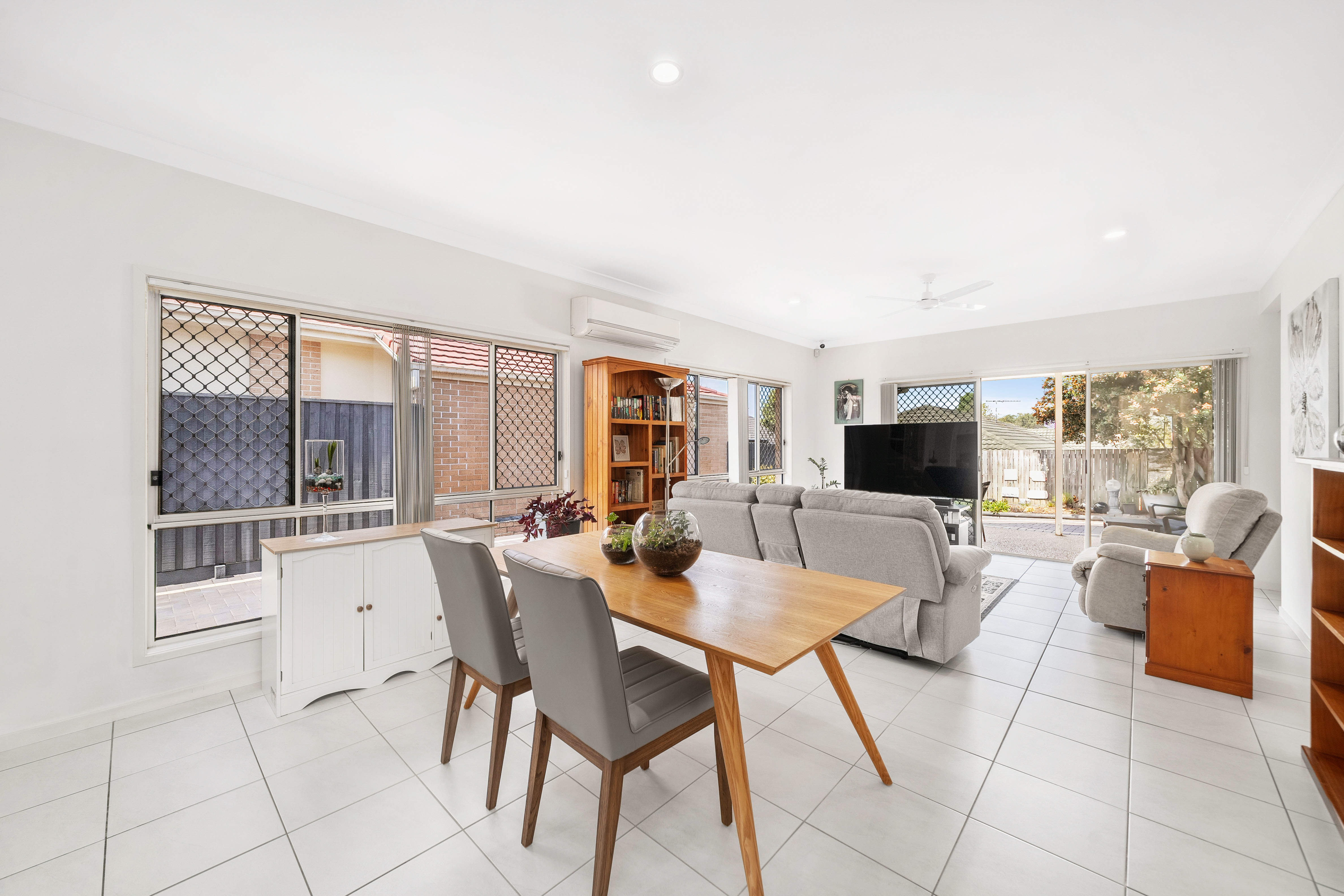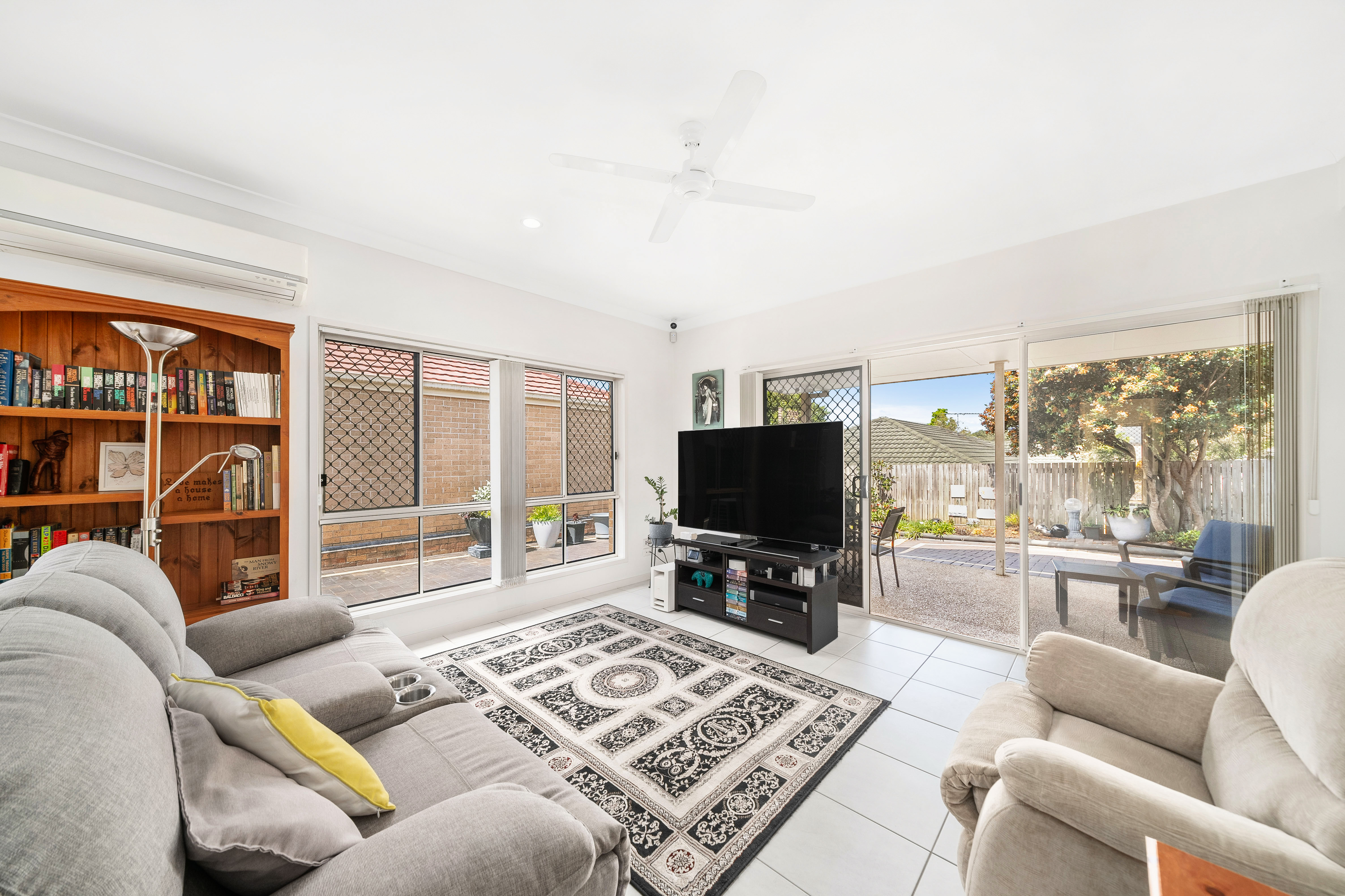 The living area is air-conditioned for year-round comfort and is fully tiled for easy maintenance. It flows seamlessly into the outdoor entertaining space, creating the perfect atmosphere for family gatherings or quiet nights in.