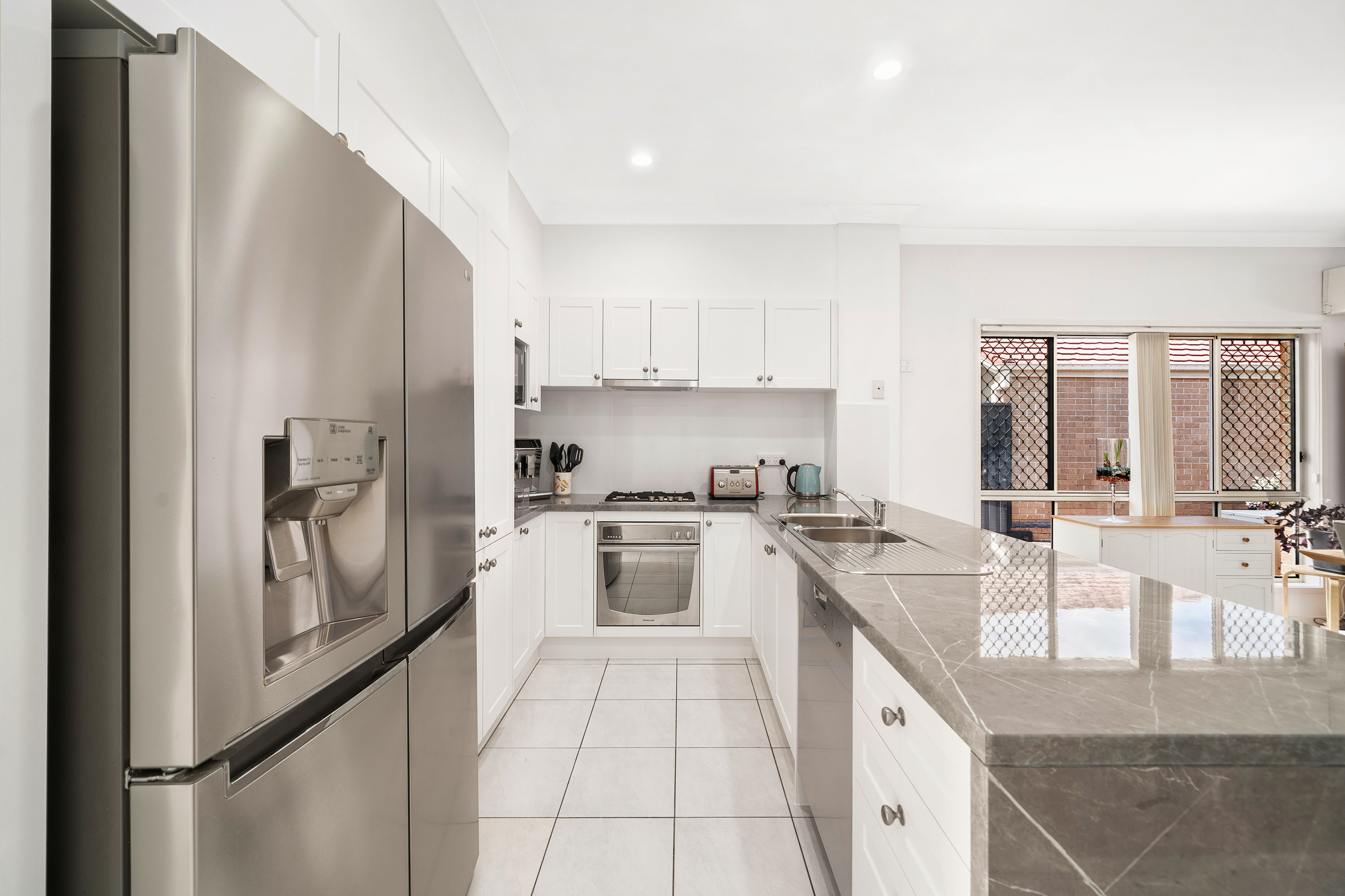 At the heart of the home is the brand-new kitchen, installed in September 2024. It boasts a gas cooktop, ample cabinetry, and luxurious benchtop space, ideal for meal preparation and storage. The kitchen also includes a double sink, dishwasher, and plenty of natural light, making it a practical and inviting space for the entire family.