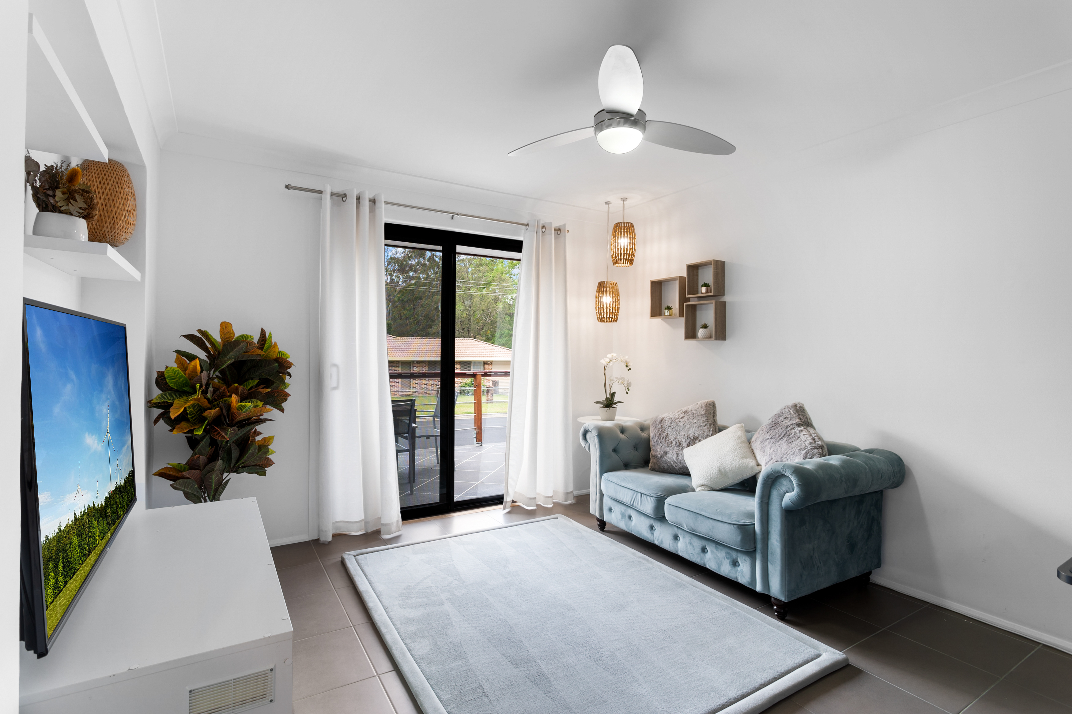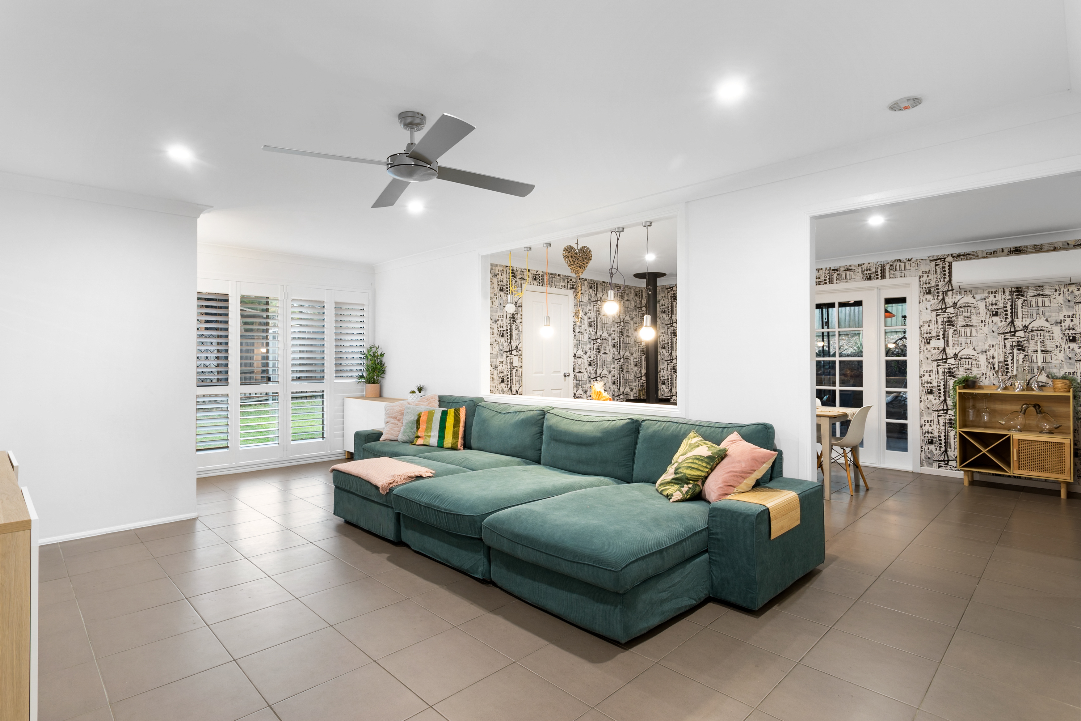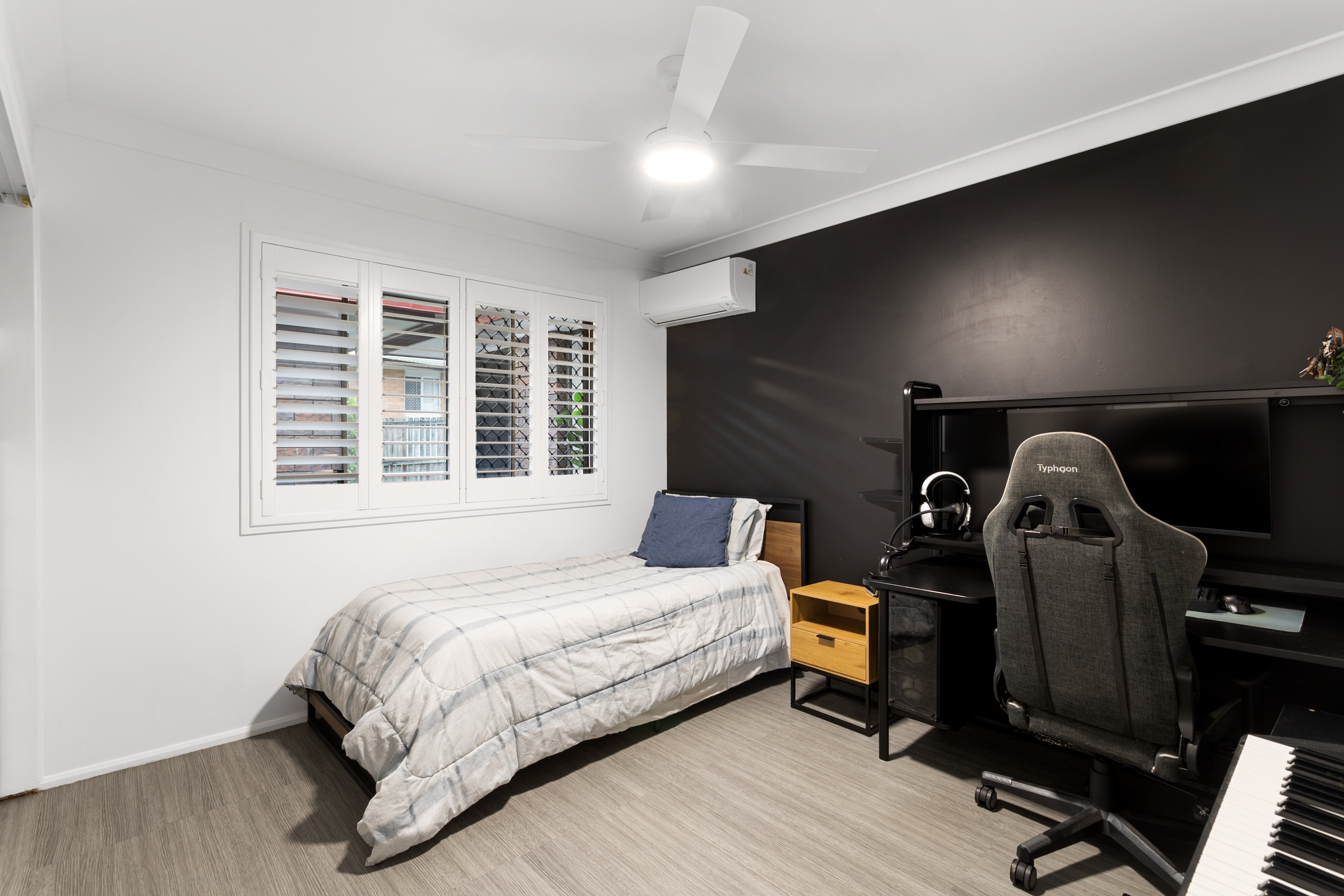 Air conditioning in the main living and two bedrooms as well as fans throughout provides comfortable living conditions all year round. The fourth bedroom can be used as a multipurpose room, such as a separate living space v room, toy room, study, or even be utilised for a business opportunity, as the room is equipped with its own separate entry.