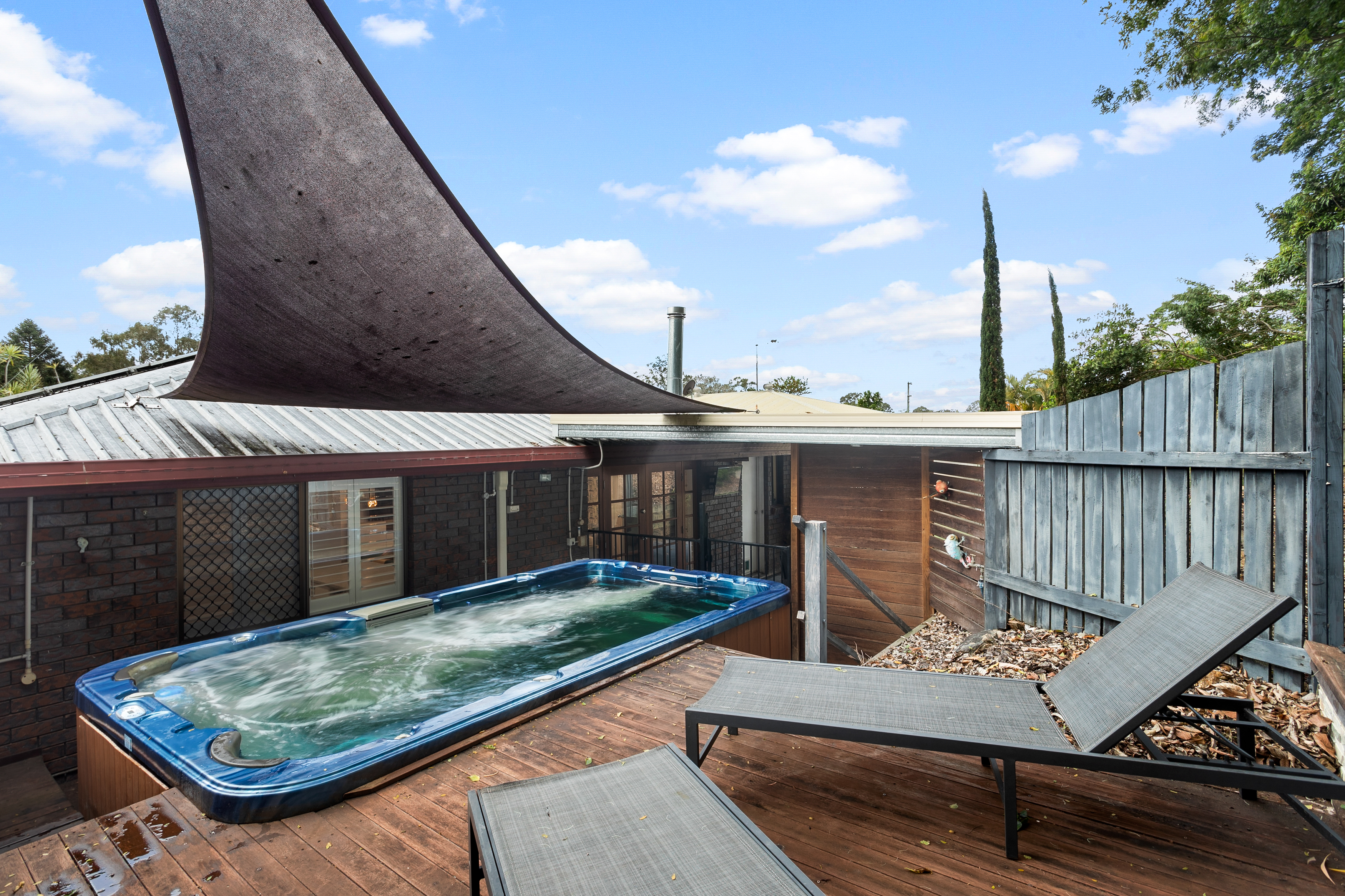 The beautiful contemporary house, as is, features central lounge, living and dining areas with all bedrooms on one side and stunning French doors lead from the dining room into the covered outdoor alfresco area, perfect for entertaining on those warm summer days. Adjoining the patio is a deck and swim spa, great for cooling off in the heat, as a plunge pool and soaking in the warmth in winter.
