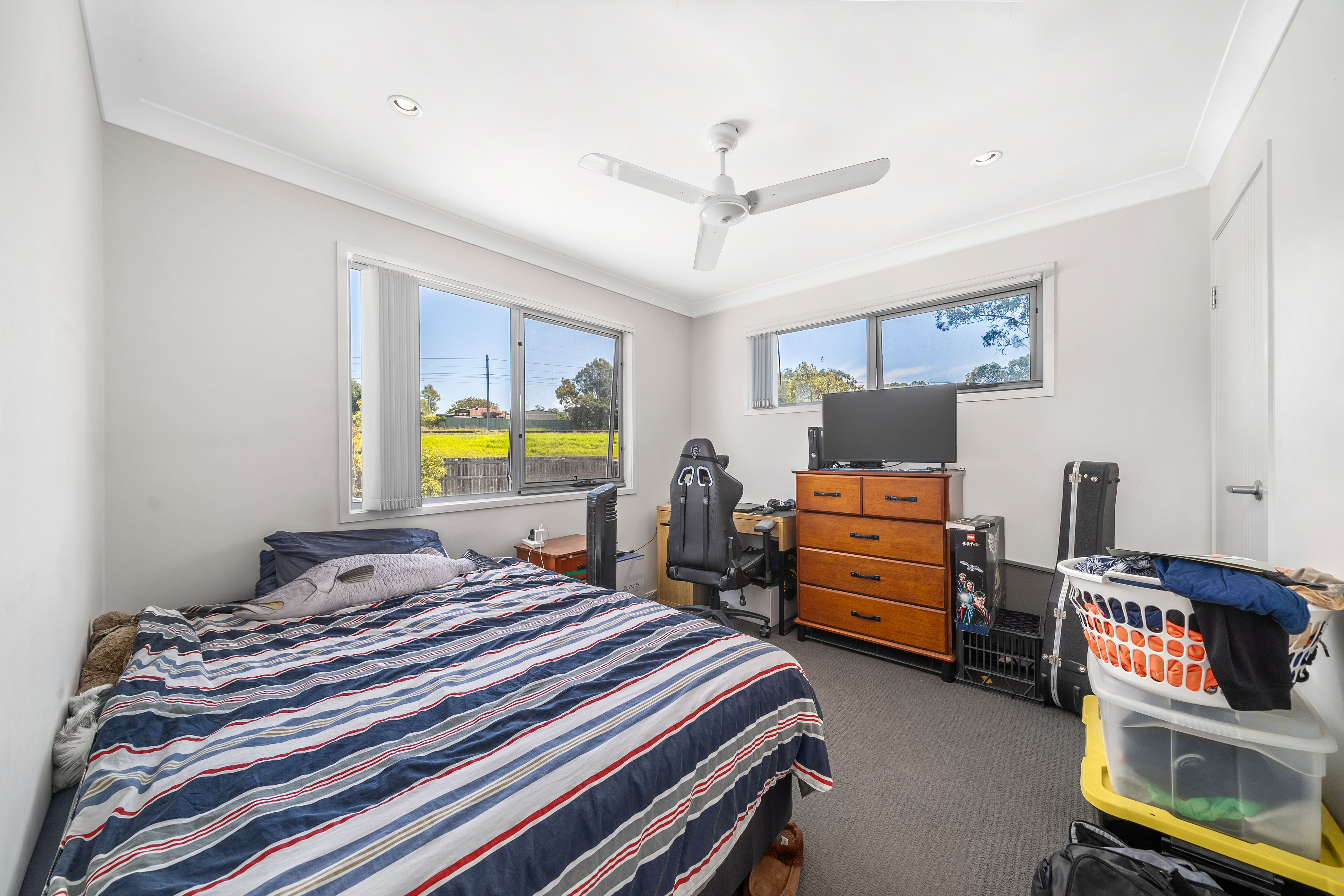 Head upstairs to find the spacious primary suite, where you can unwind in air-conditioned comfort. With a built-in wardrobe and a stylish ensuite boasting a full-sized shower, this room is designed to be your private sanctuary. Two additional bedrooms, both with ceiling fans and built-in robes, provide ample space for family or guests. They share a modern main bathroom complete with a full-sized bath and separate shower, ensuring convenience for everyone.
