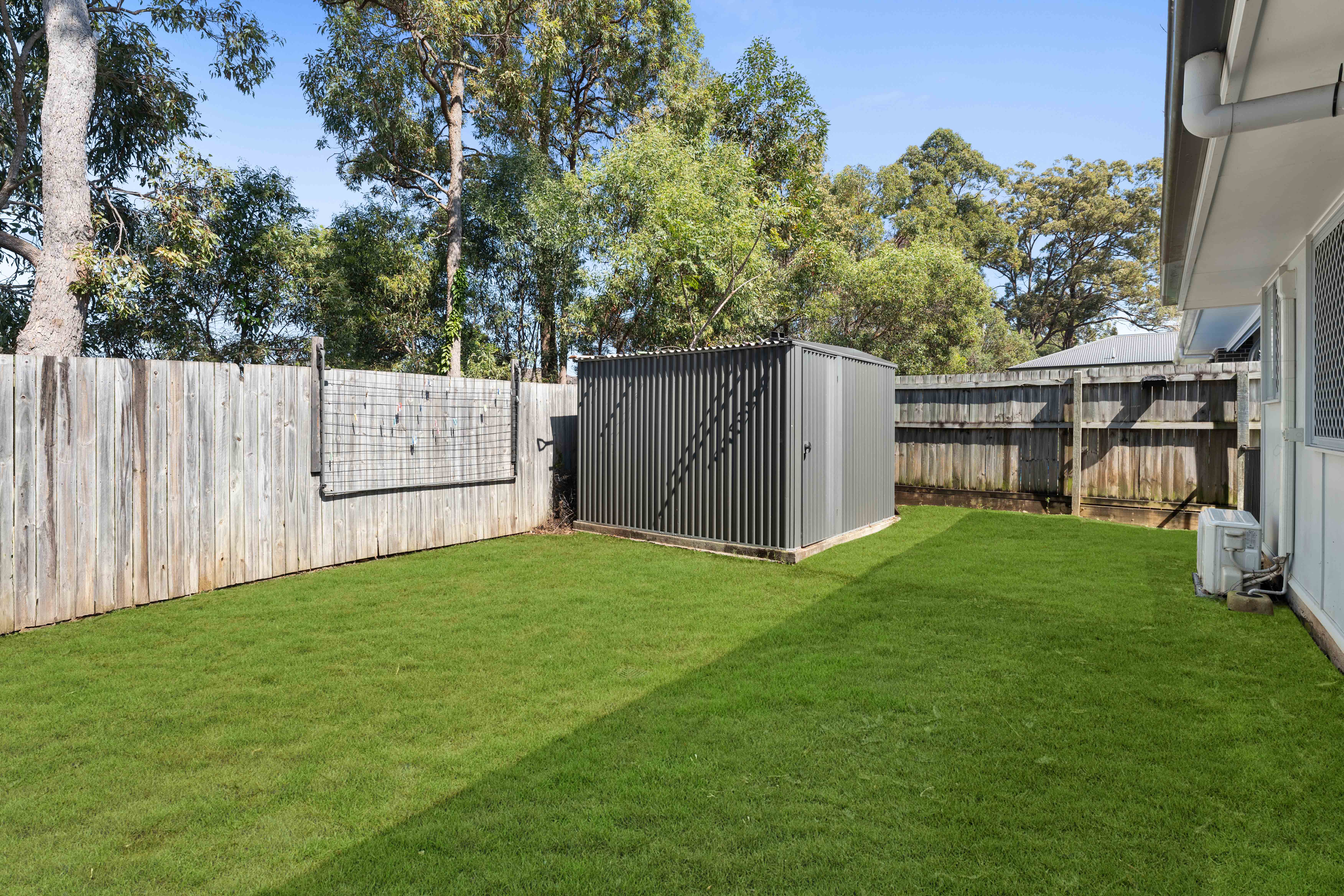 Sustainability is key, with an efficient solar power system consisting of 18 panels reducing your carbon footprint and energy bills. Outside, the garden beckons with a handy shed, providing additional storage for garden tools or hobbies.