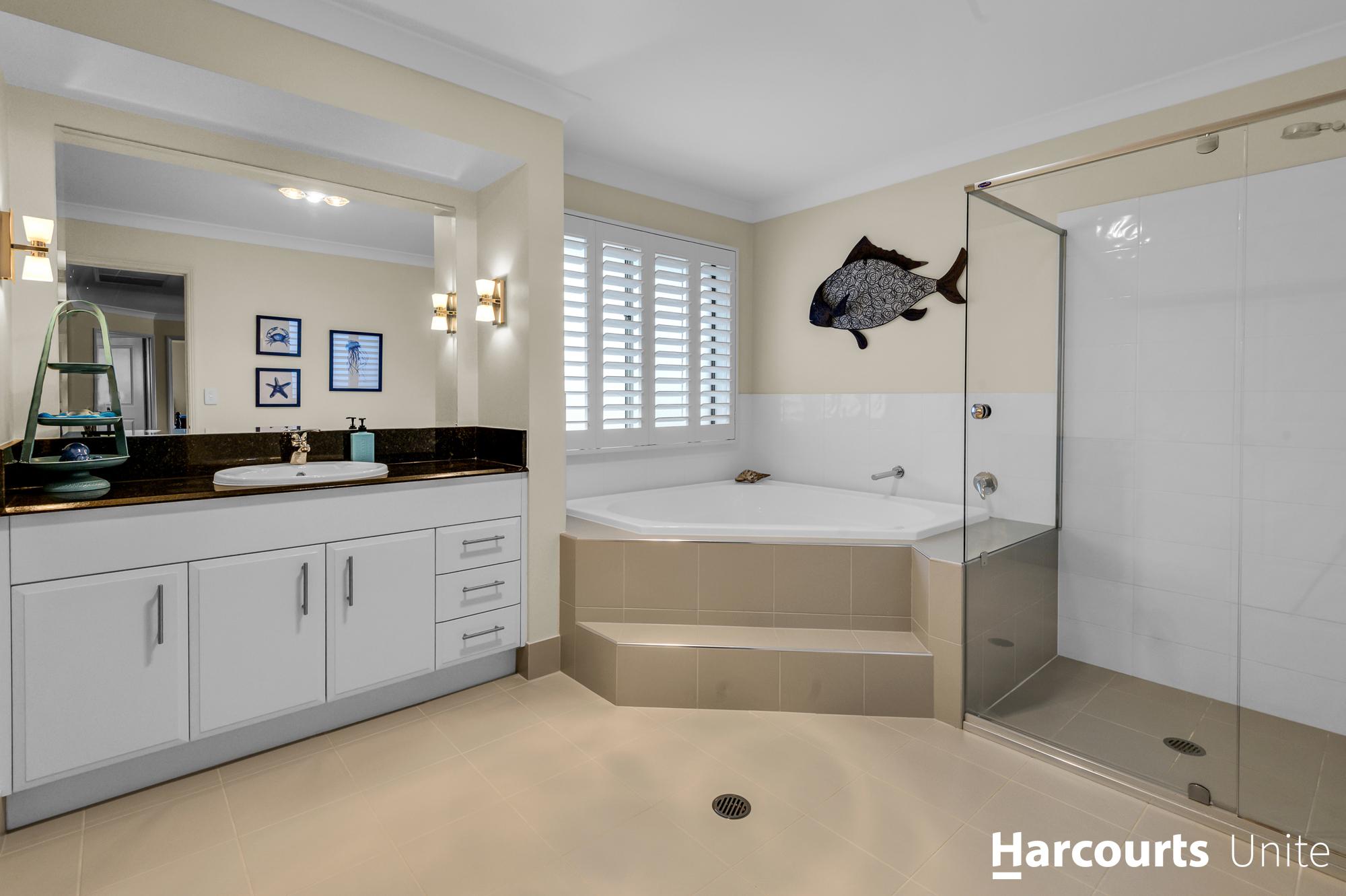 Venture upstairs to find a sanctuary of comfort and indulgence, including a spacious media room for additional entertainment options. The palatial master bedroom beckons with a walk-in robe and a lavish ensuite boasting a shower, separate bath, and his and her basins, offering a haven of relaxation and rejuvenation.