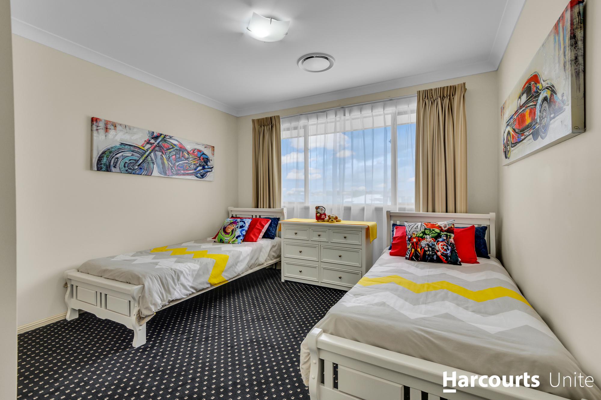 * Downstairs bathroom with shower * Internal laundry with linen cupboard * Ample storage upstairs and downstairs * Upstairs media room * Axminster Carpets and Porcelain tiles * Palatial master bedroom with walk-in robe and lavish ensuite with a shower, bath as well as his and her basins. * Bedroom 2 with built in and study nook. * Bedrooms 3 & 4 with built in wardrobes * Main bathroom with shower and large corner bath. * Large walk-in linen and storage room upstairs * Garden shed out the back * Rendered brick and Colour bond fencing * Ducted Vacuum * Water tank * 3 car garage with roller door access to the rear