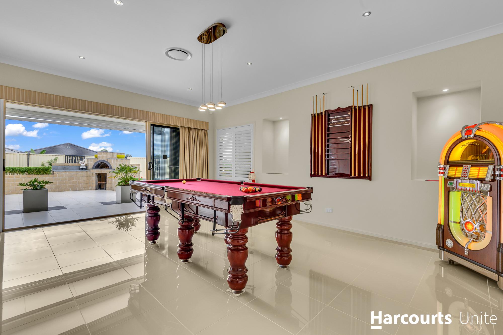 Discover another realm of relaxation in the separate games room, currently being used as a billiards room however your options are endless. Ideal for making memories with family and friends. Step outside into the ultimate outdoor entertainment haven, complete with a large undercover area featuring aluminium plantation shutters, a built-in BBQ area, and a wood fired pizza oven, perfect for alfresco dining and entertaining year-round.