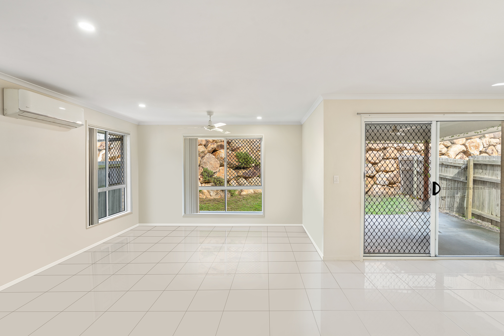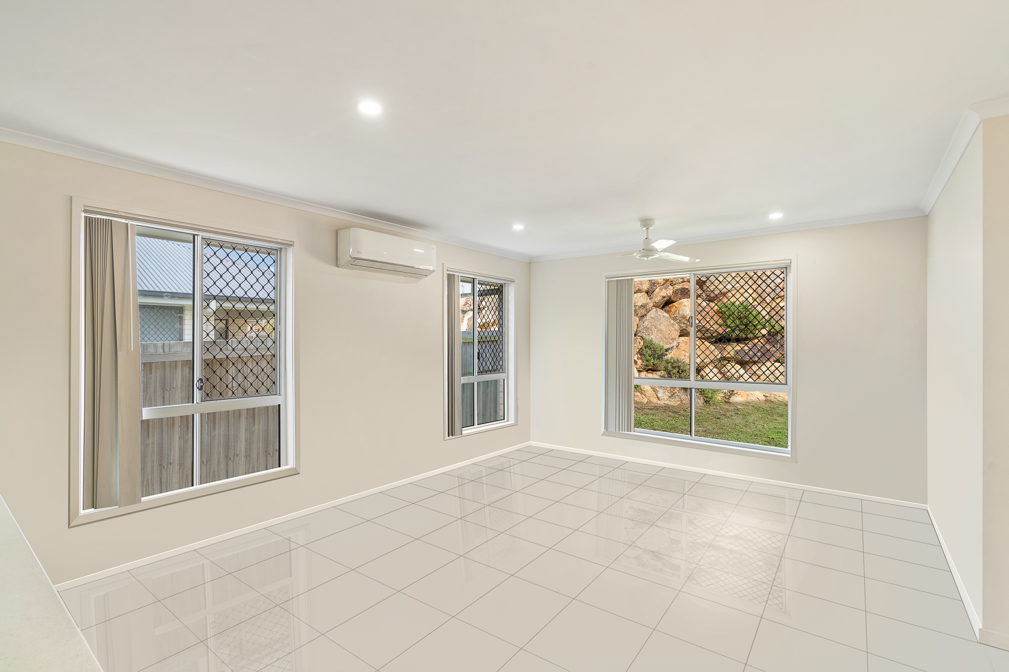 Four Bedrooms - Master with ensuite bathroom and walk-in wardrobe Two bathrooms - ensuite to master bedroom Study Open plan lounge, kitchen and dining leading out to the rear, outdoor patio area Air-conditioning and ceiling fans Security screens Fully fenced Remote controlled, internal access garaging