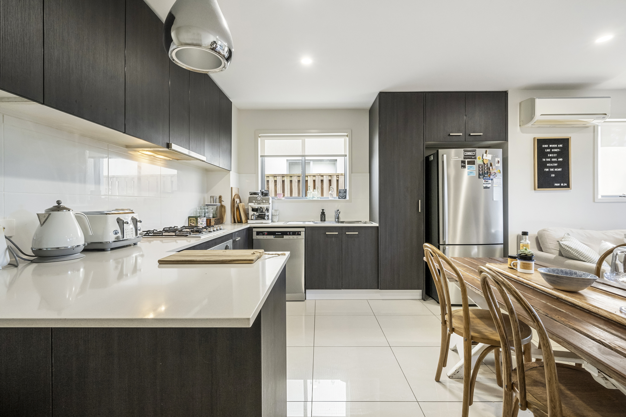 Step inside and immediately feel the warmth and elegance, thanks to the high-end finishes throughout. The open-plan living area features a stylish kitchen, complete with stone benchtops, making it an entertainer's dream.
