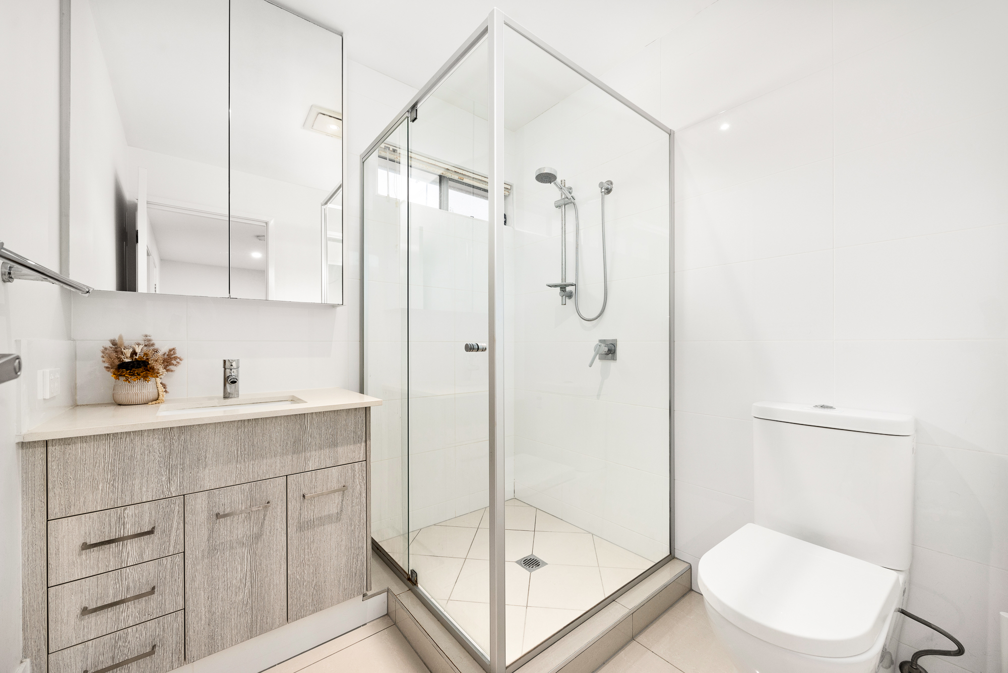 The master bedroom is a true retreat, offering a spacious walk-in robe and a lavish ensuite. For added convenience, the master suite also features a private balcony providing the perfect spot to enjoy your morning coffee. The remaining two bedrooms are generously sized and serviced by a modern main bathroom.
