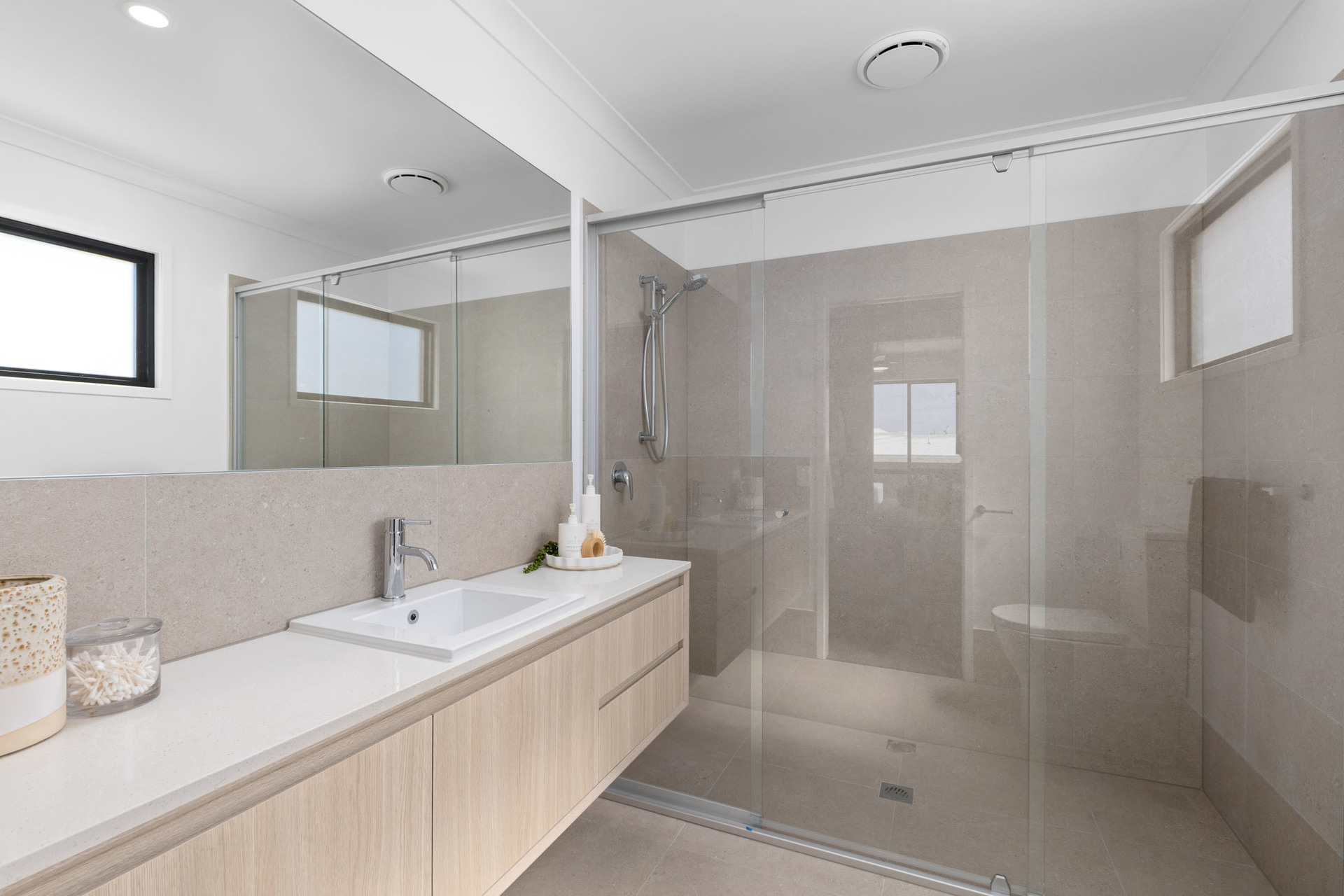 Two modern bathrooms including the master ensuite, the main bathroom with a shower/bath, plus the convenience of an additional powder room downstairs