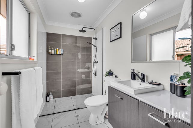 This modern townhouse offers a practical two level design with four spacious bedrooms, two bathrooms, and a double garage.